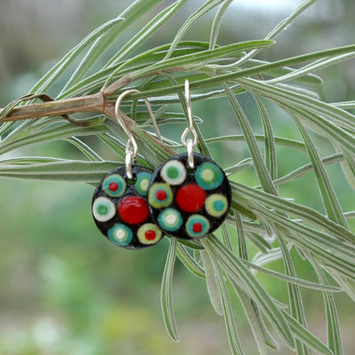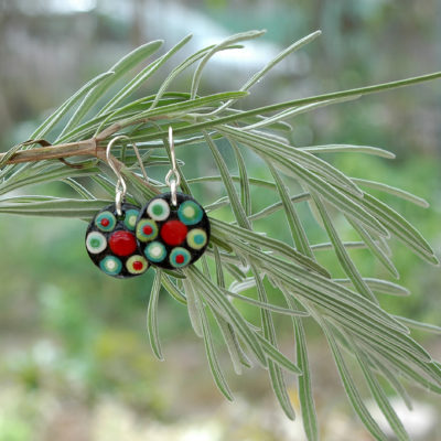 Son muy elegantes, sobre el fondo negro destacan con alegría los colores verde y rojo. Cuando los uses, tu rostro se iluminará y te llenará de energía. Son joyas únicas y llenas de amor. No te cansarás de llevarlos todos los días. Los metales son de plata hipoalergénica, por lo que evitarás lastimarte y podrás disfrutarlos con tranquilidad.