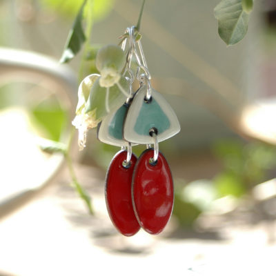 Son muy ligeros. El gancho y las anillas de los pendientes son de plata de ley. Incluyo unos pequeños cierres de silicona para no perderlos.