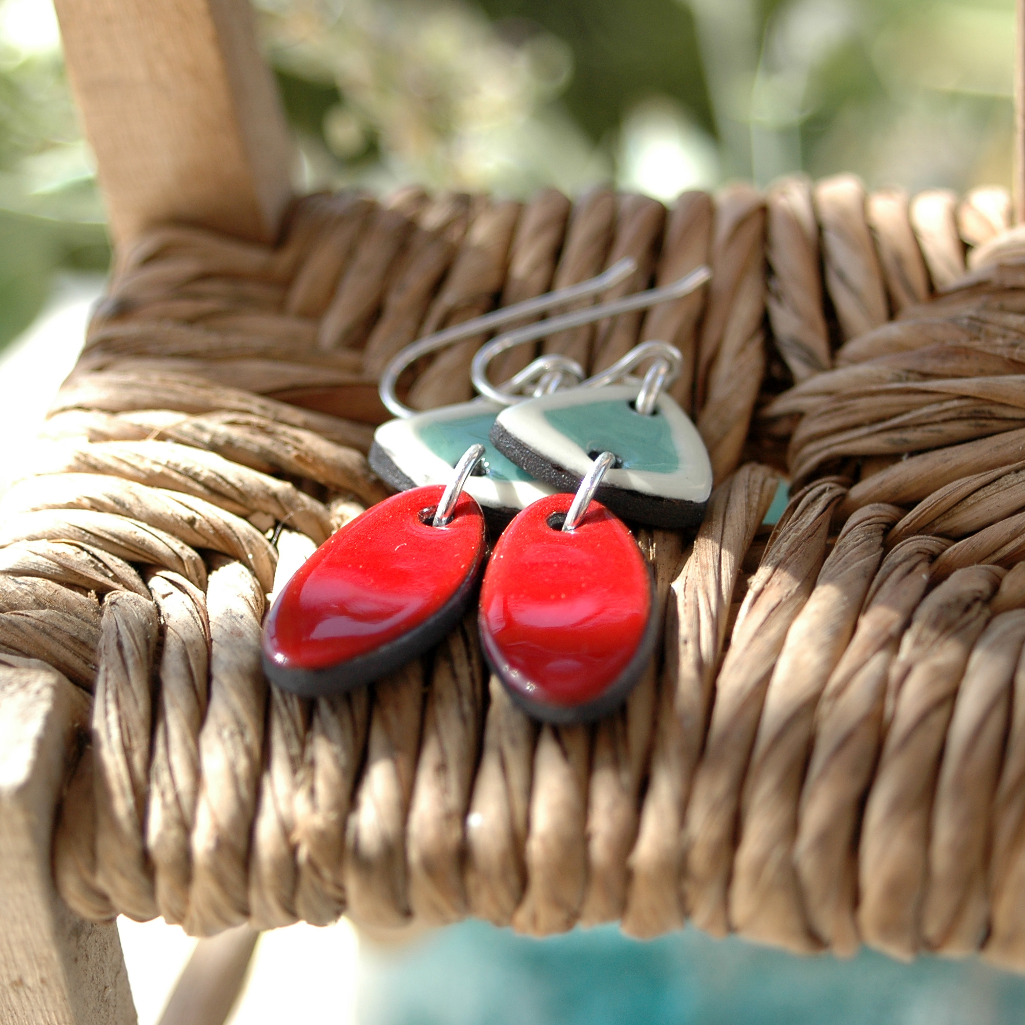 Materiales de alta calidad. Hipoalergénico. Utilizo arcilla negra y esmaltes cerámicos no tóxicos. Cada pieza está pintada a mano, por lo que puede haber una pequeña diferencia.