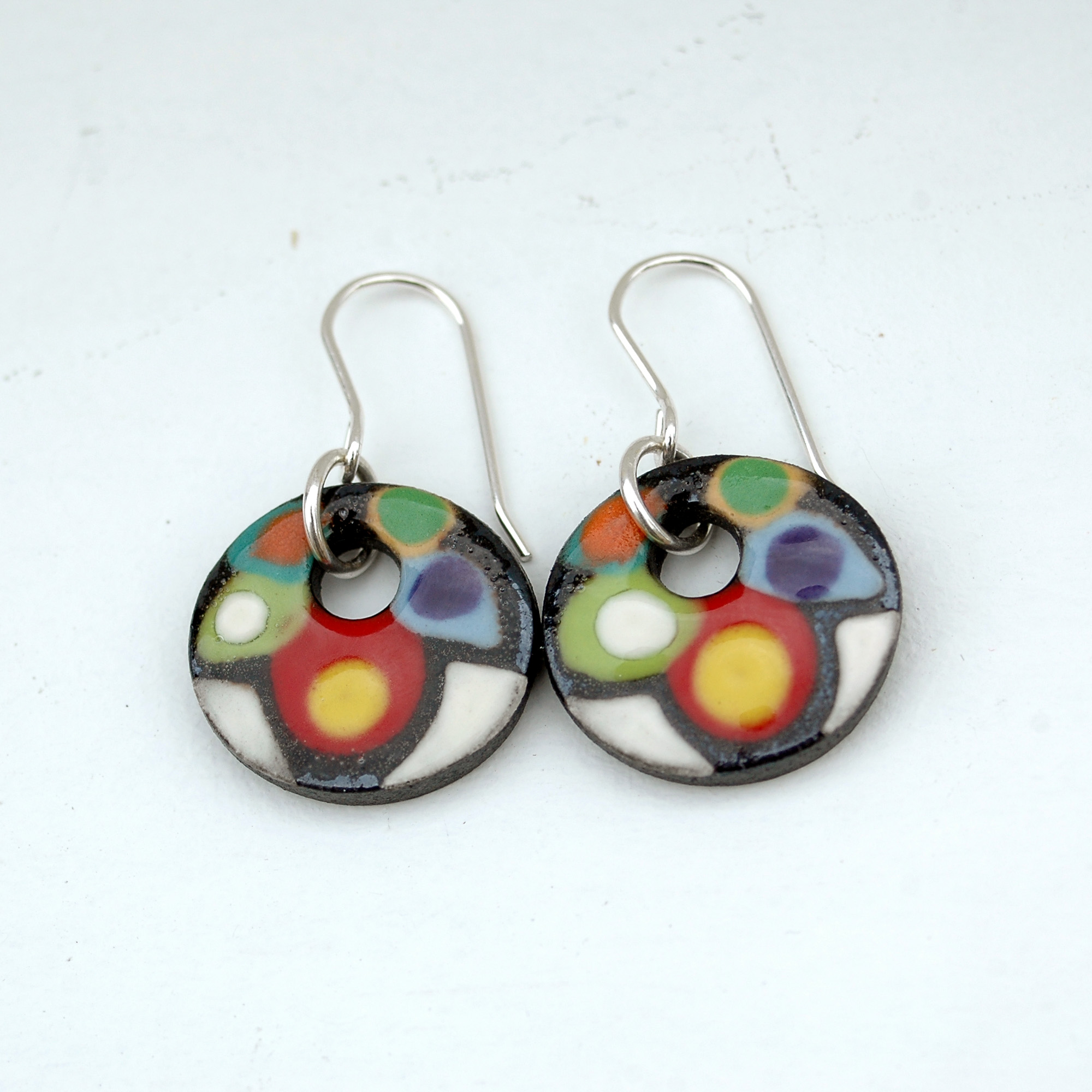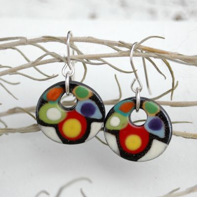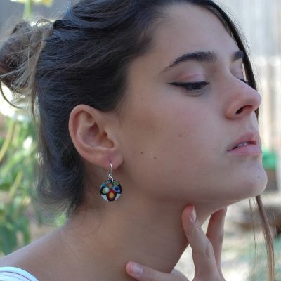 Pendiente de una pieza arito pequeño multicolor. Metales: Plata de Ley.