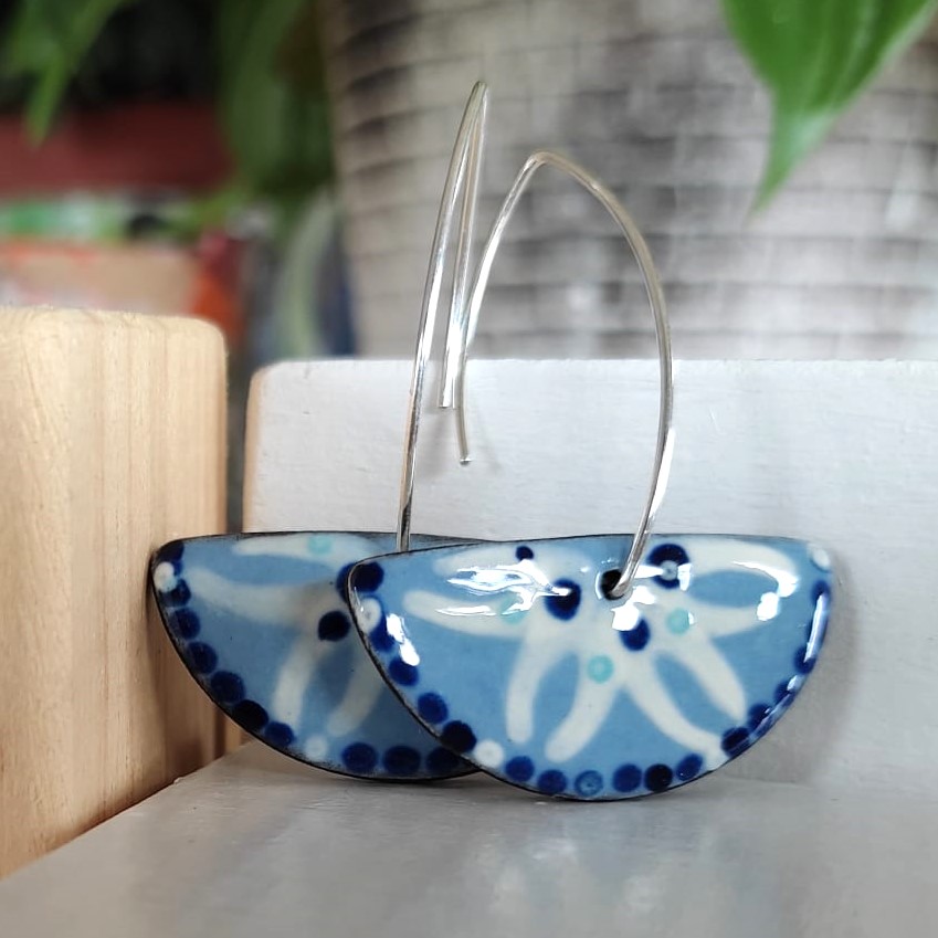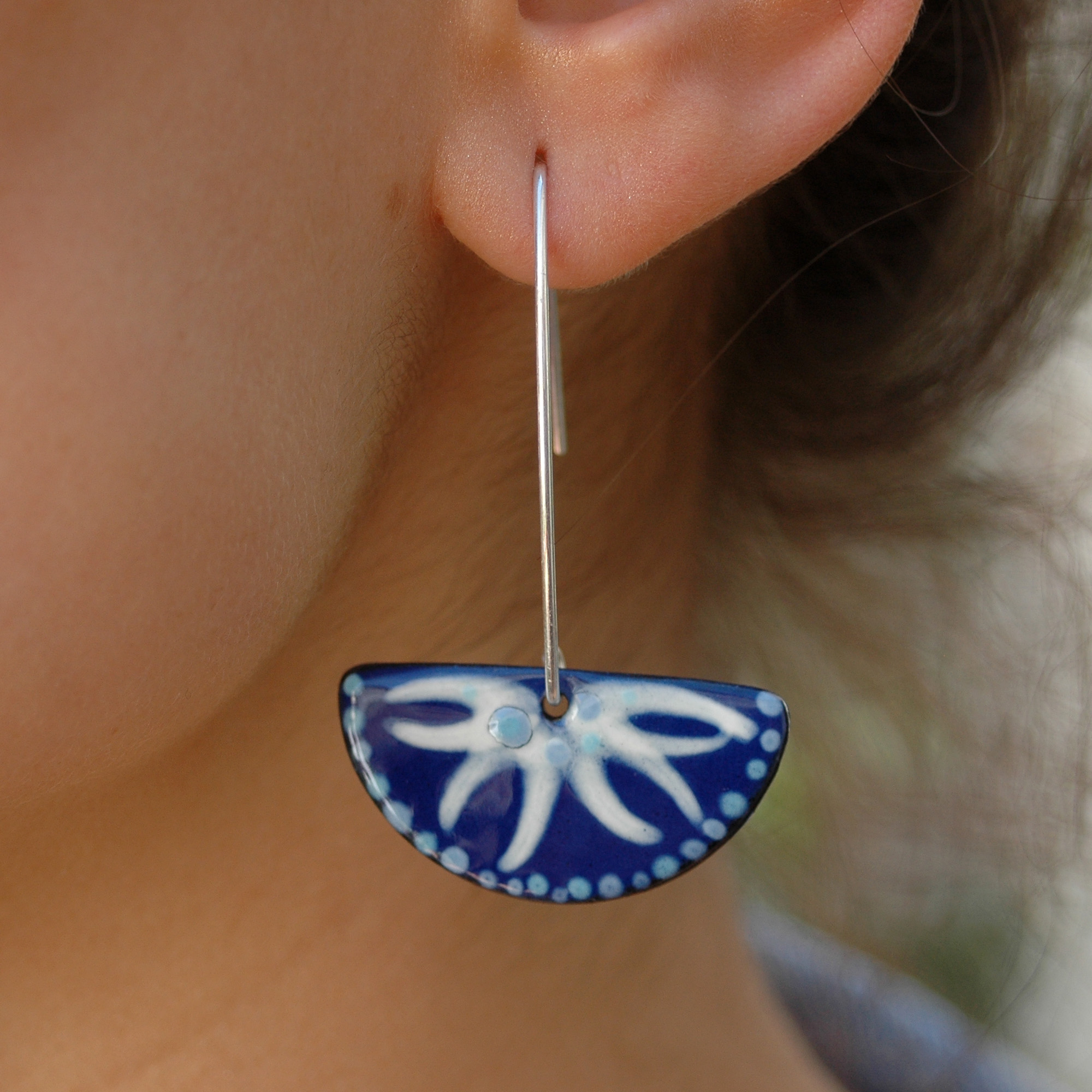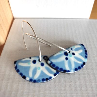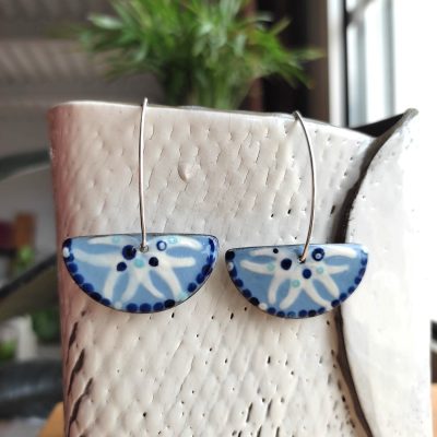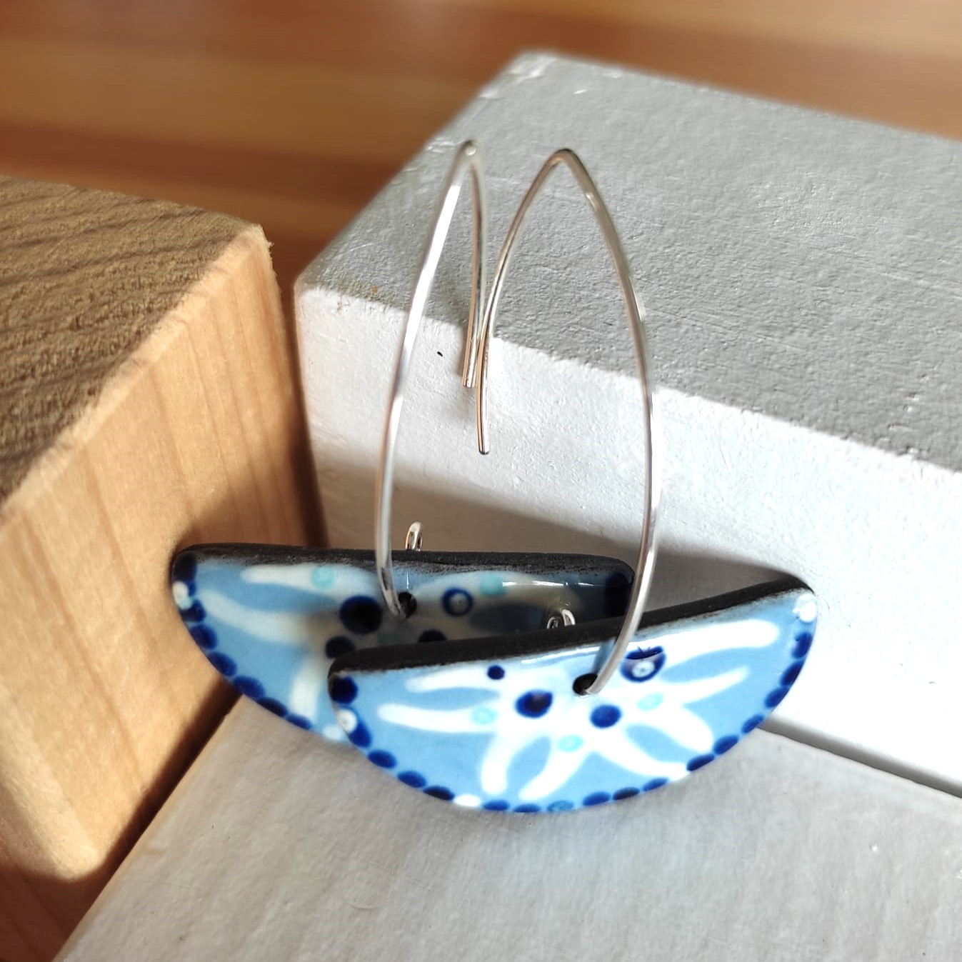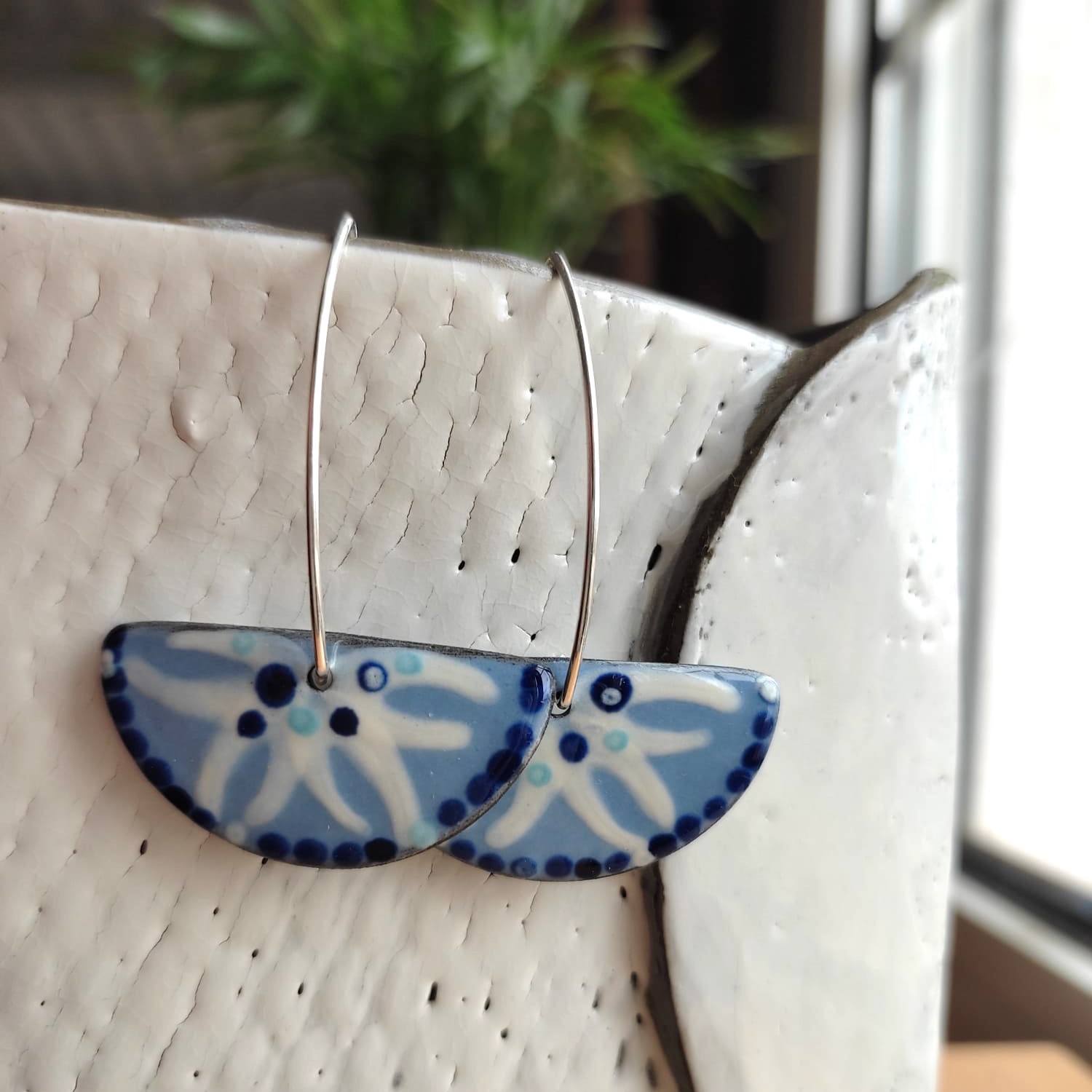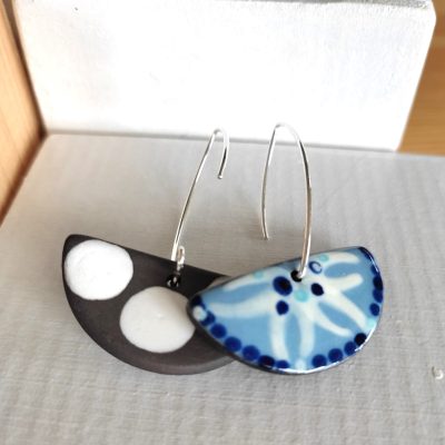 Estos pendientes de cerámica son reversibles! Puedes lucir dos estilos diferentes, tan solo tendrás que sacar la pieza de cerámica, darle la vuelta e introducirla al gancho de plata por el otro lado y listo! Un día color azul medio y otro en blanco y negro.