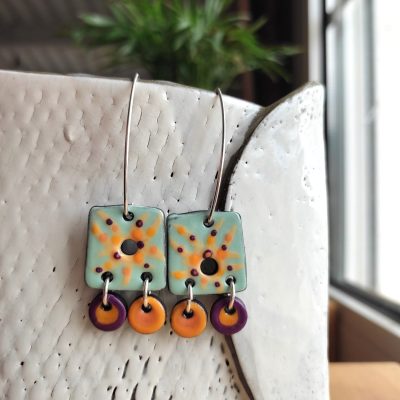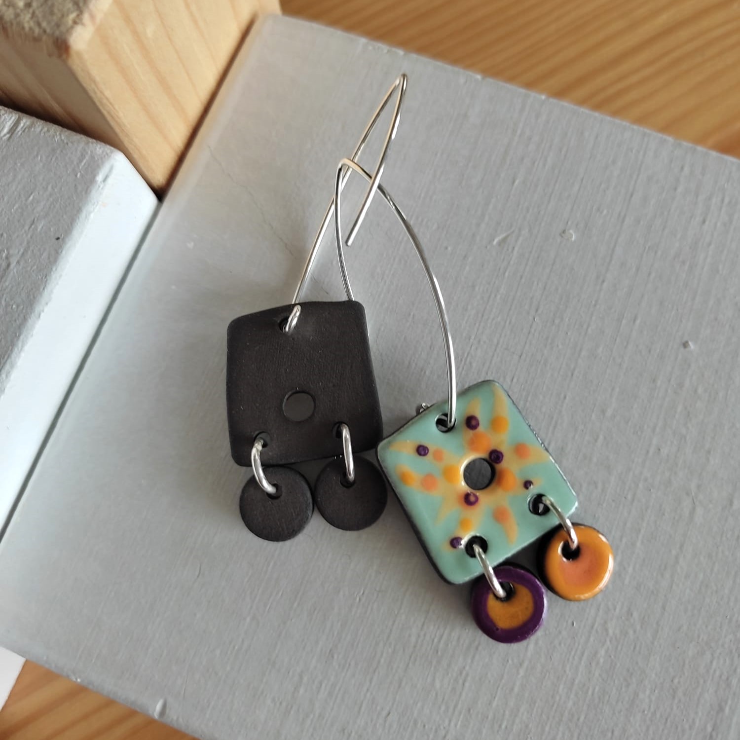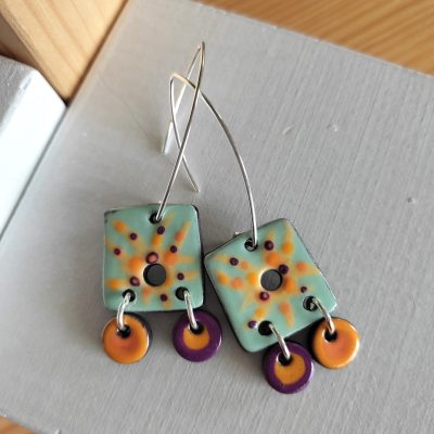 Te gustan estos pendientes de tres piezas? Una combinación de diferentes tonos de naranja y turquesa.