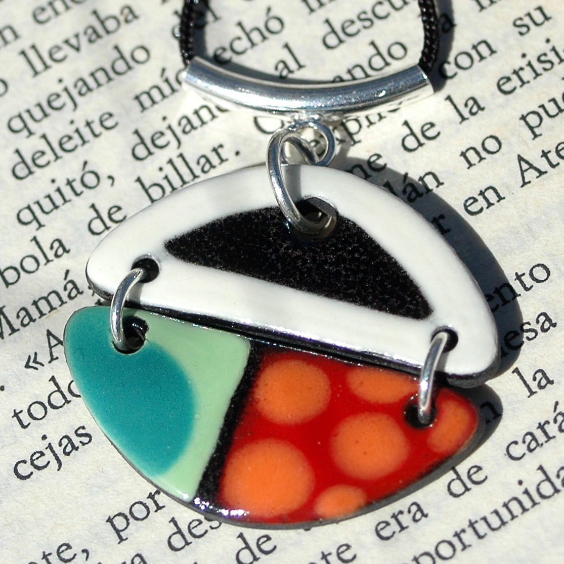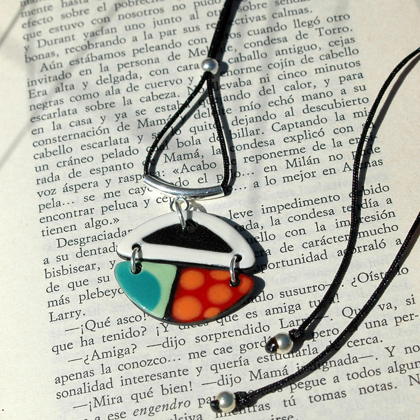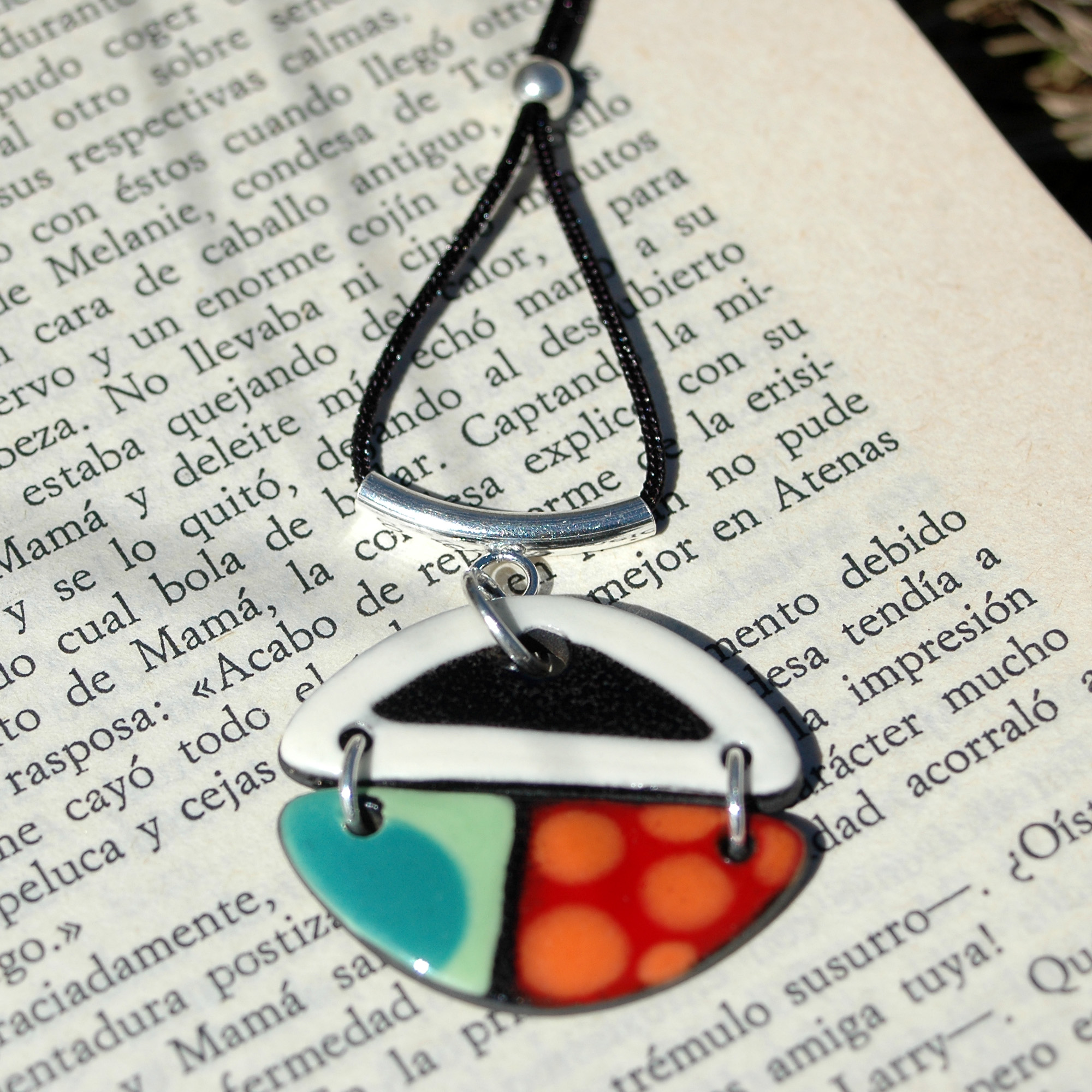 Este colgante ovalado está formado por dos piezas pintadas a mano.