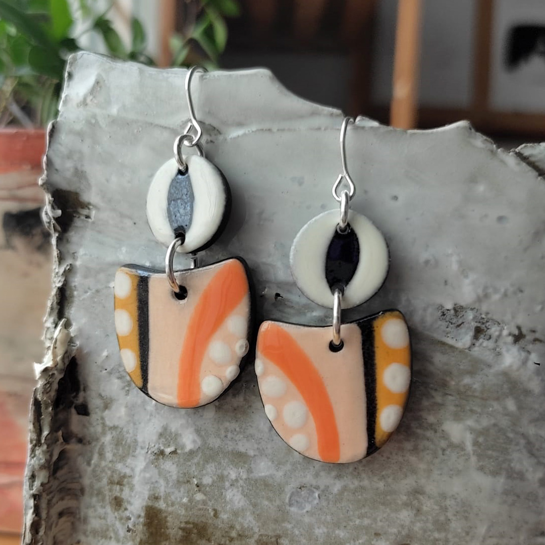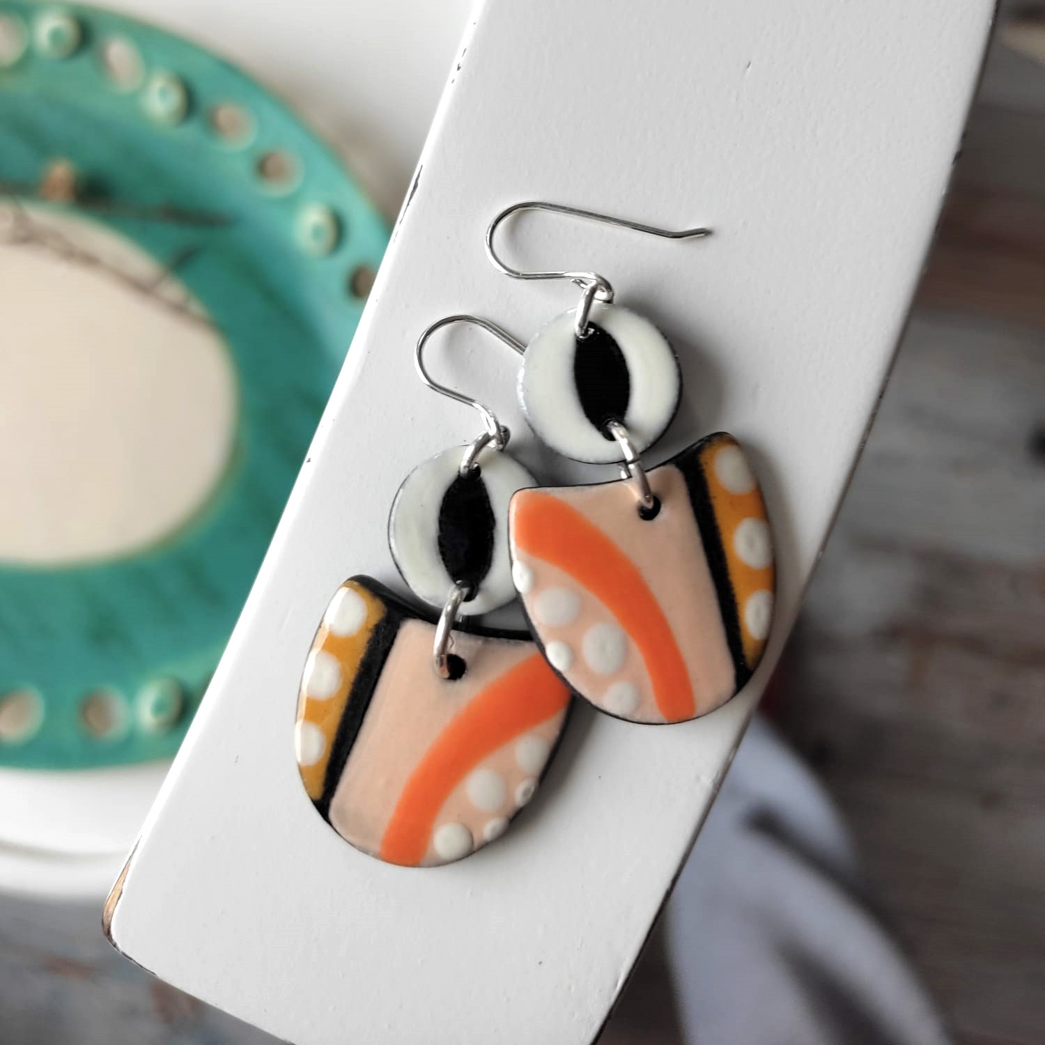 Pendientes de dos piezas Anaranjados con toques en Blanco y Negro.