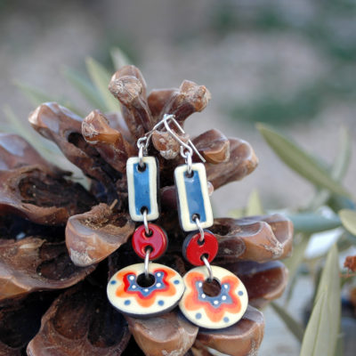 Materiales de alta calidad. Hipoalergénico. Utilizo arcilla negra y esmaltes cerámicos no tóxicos. Cada pieza está pintada a mano, por lo que puede haber una pequeña diferencia.
