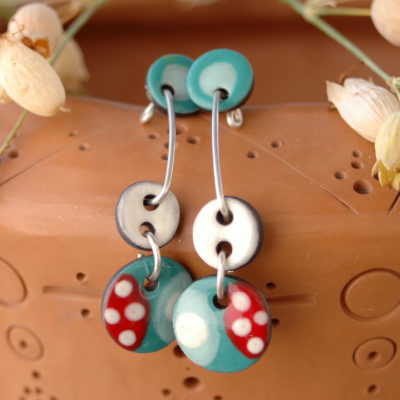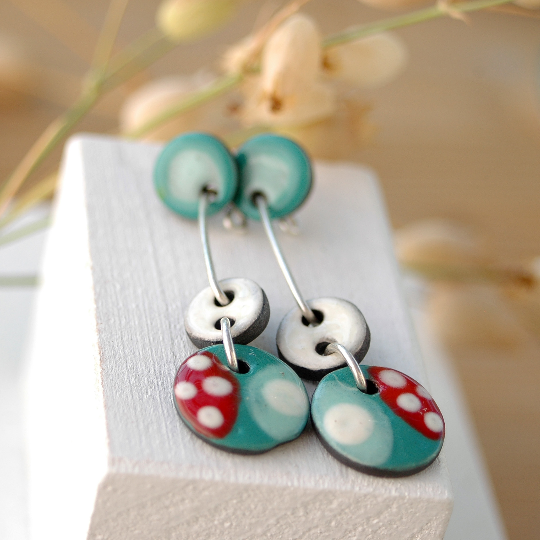 Materiales de alta calidad. Hipoalergénico. Utilizo arcilla negra y esmaltes cerámicos no tóxicos. Cada pieza está pintada a mano, por lo que puede haber una pequeña diferencia.