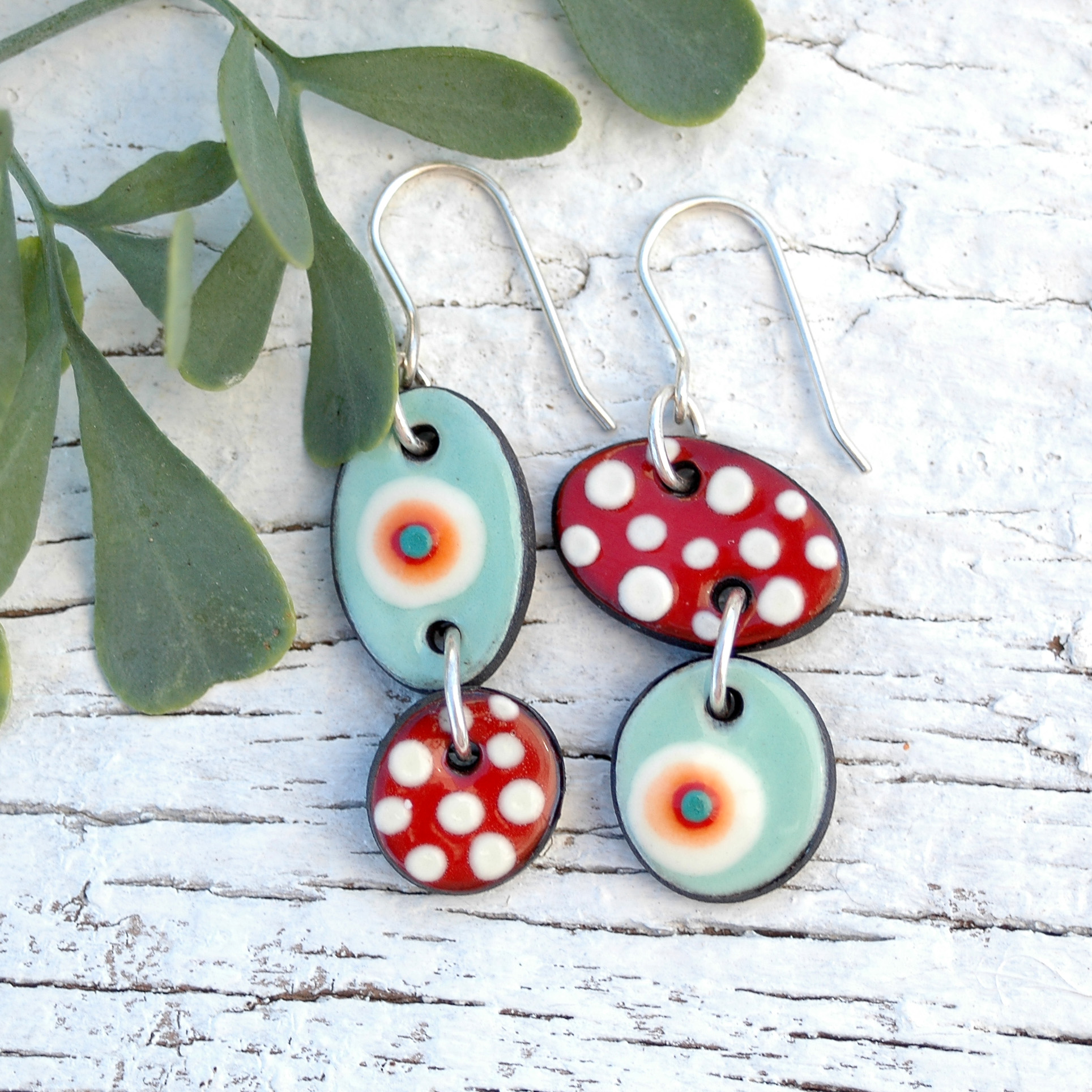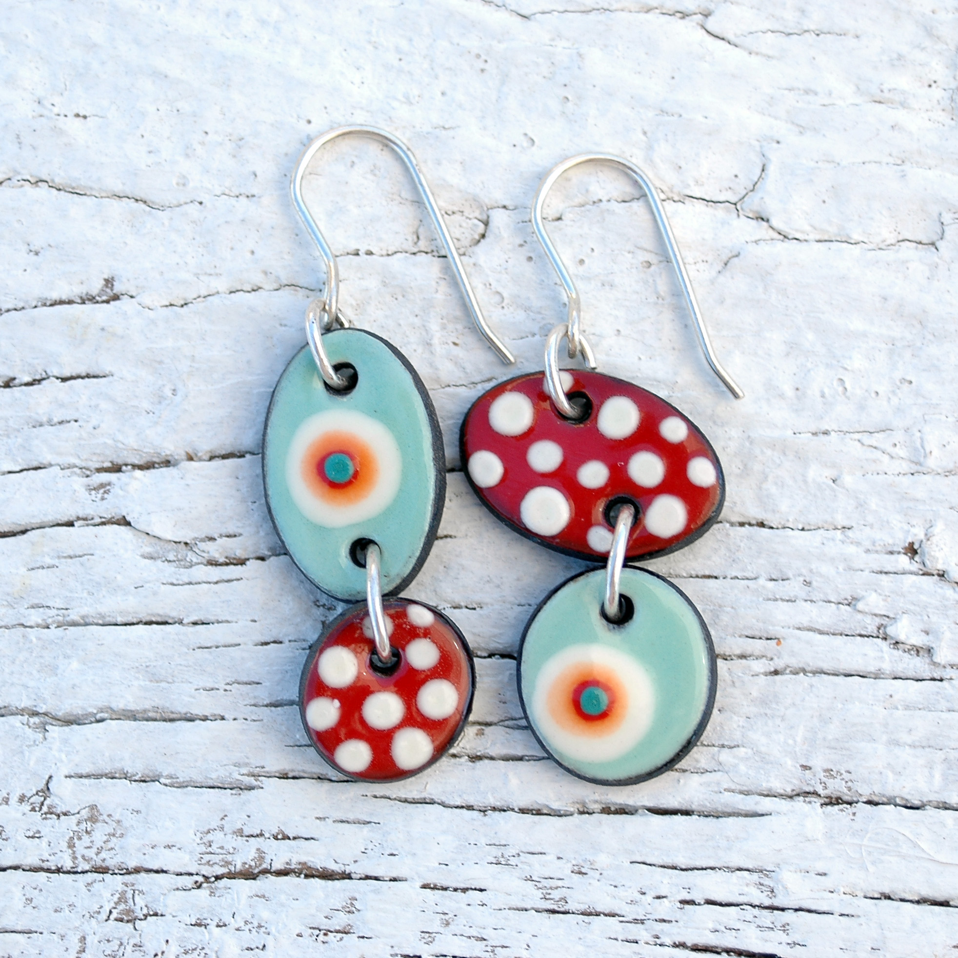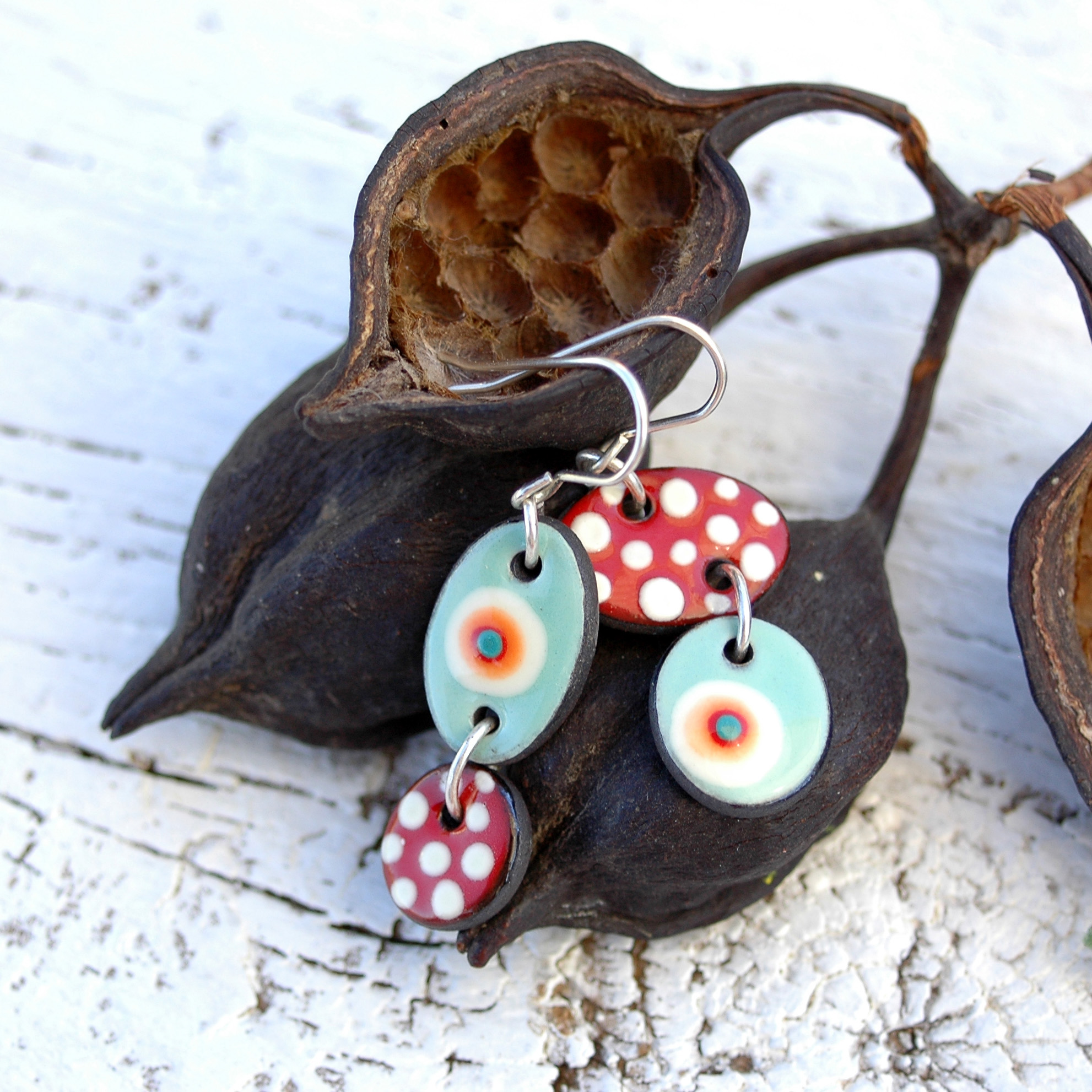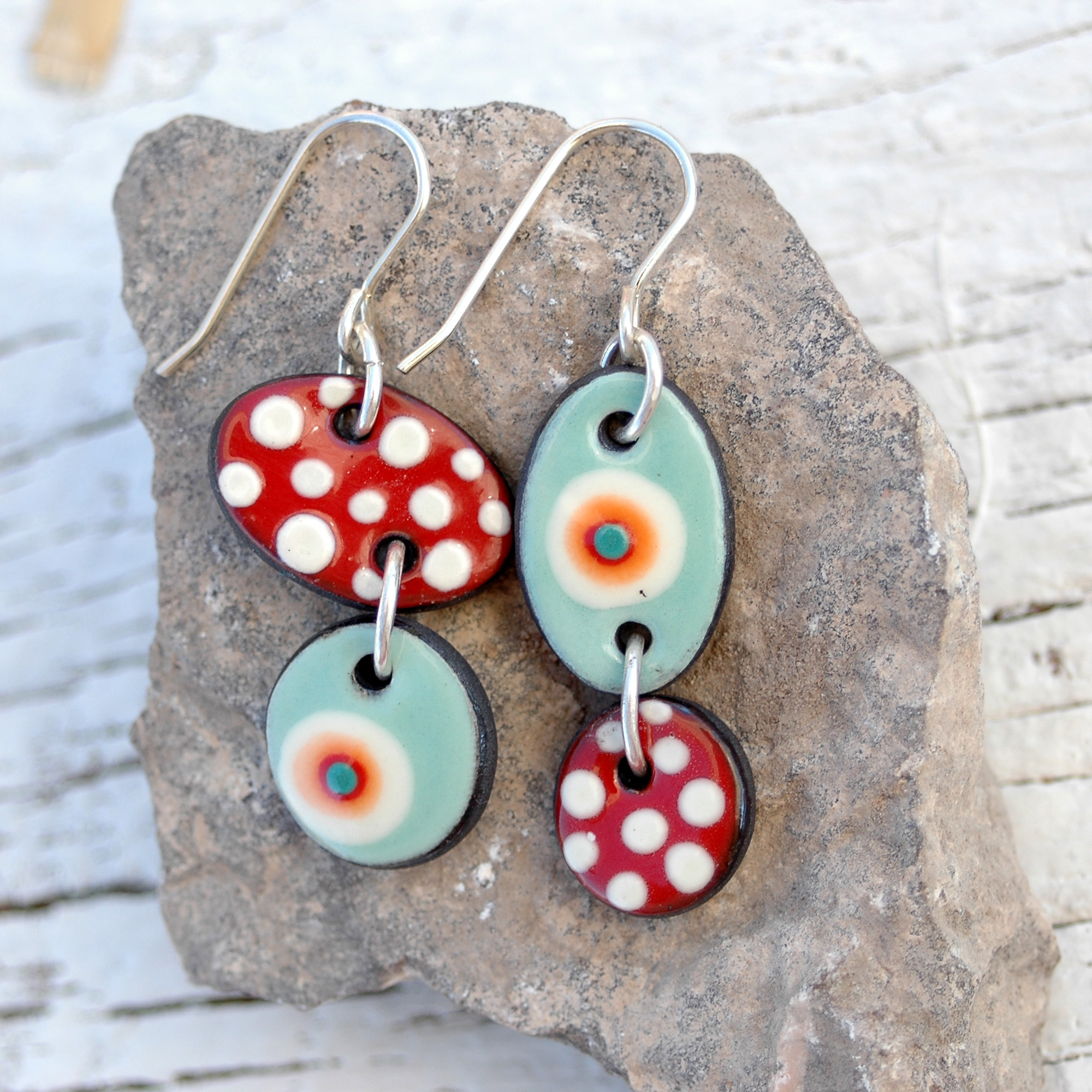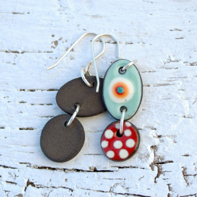 Diviértete con estos pendientes asimétricos de cerámica. Ligeros y llenos de color!!