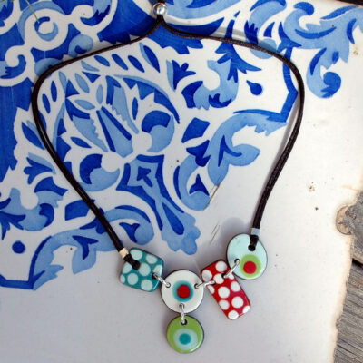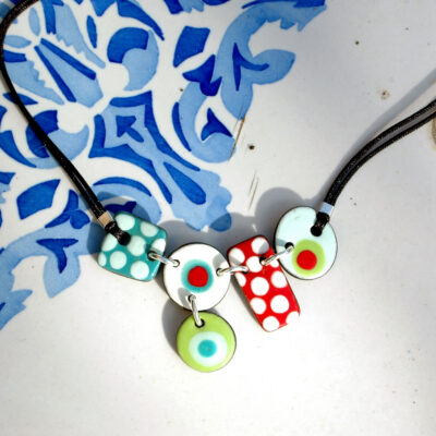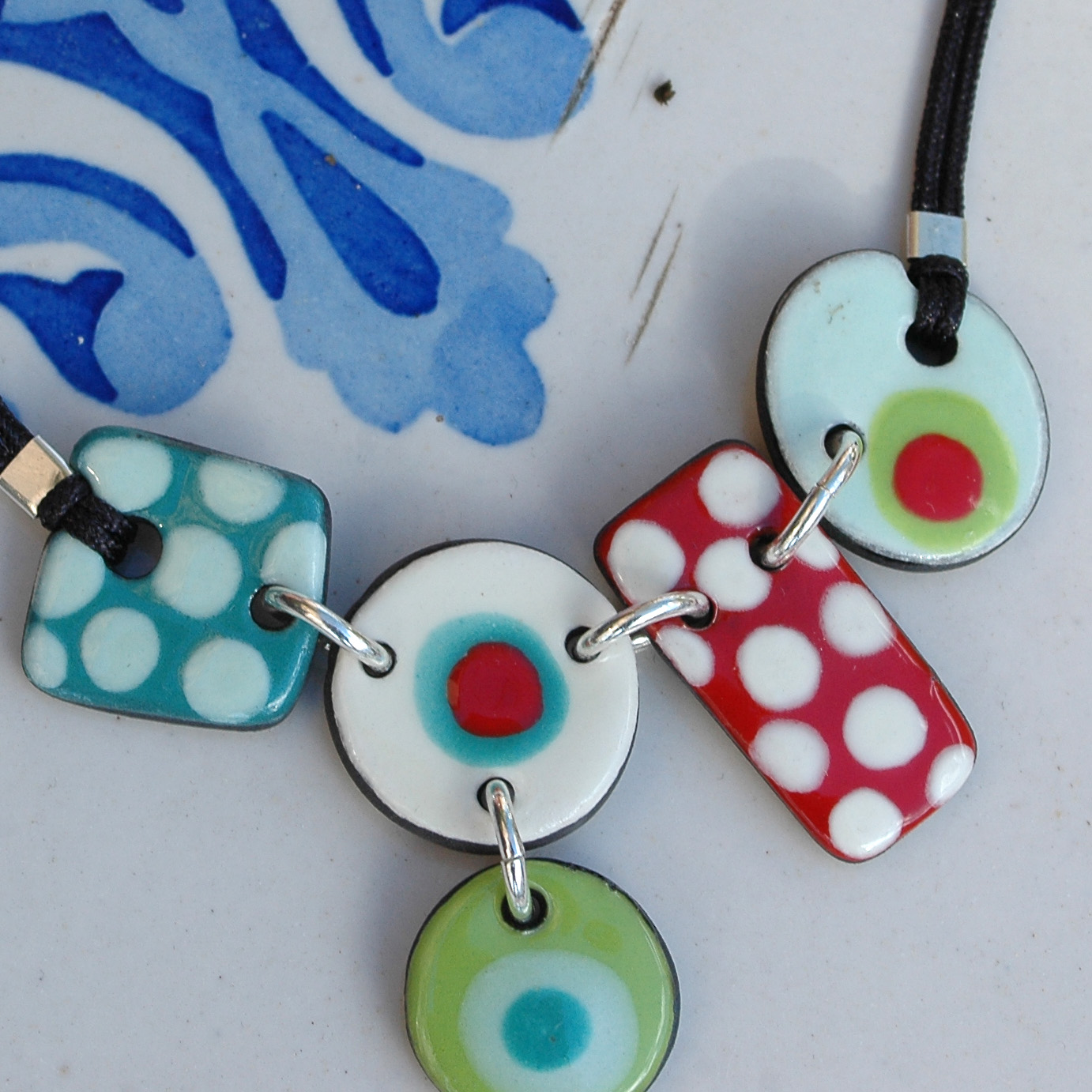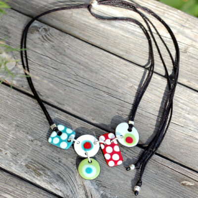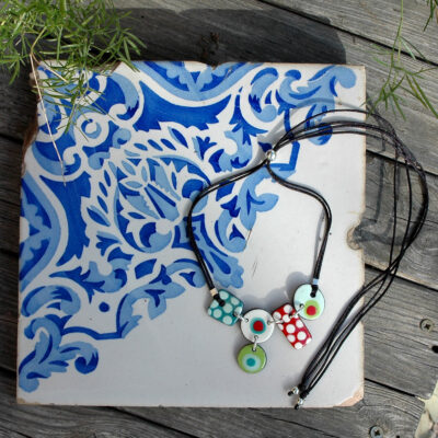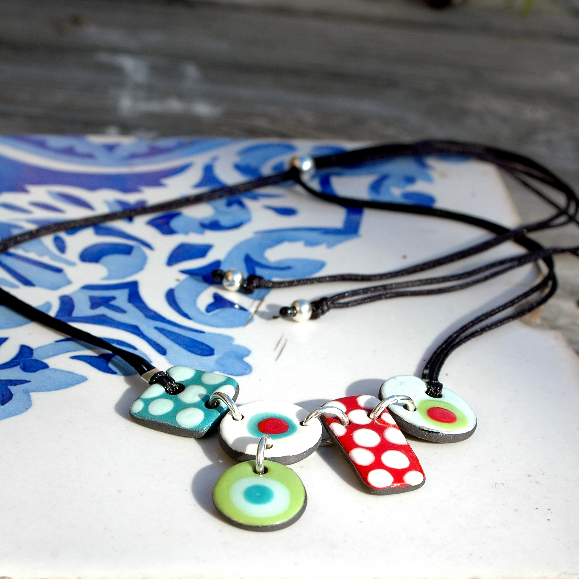 Materiales de alta calidad. Hipoalergénico. Utilizo arcilla negra y esmaltes cerámicos no tóxicos. Cada pieza está pintada a mano.
