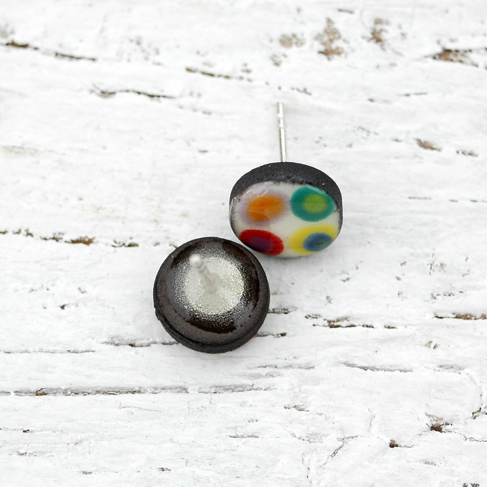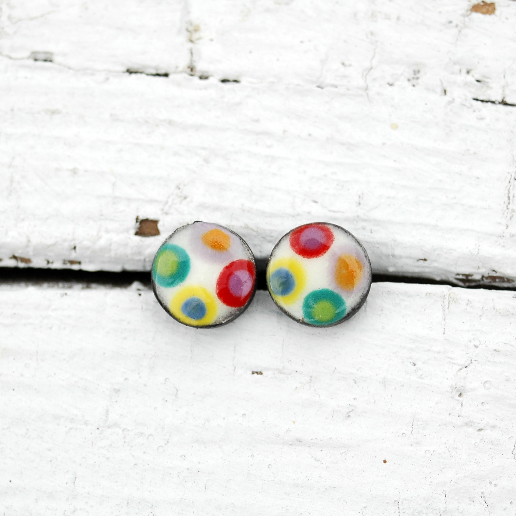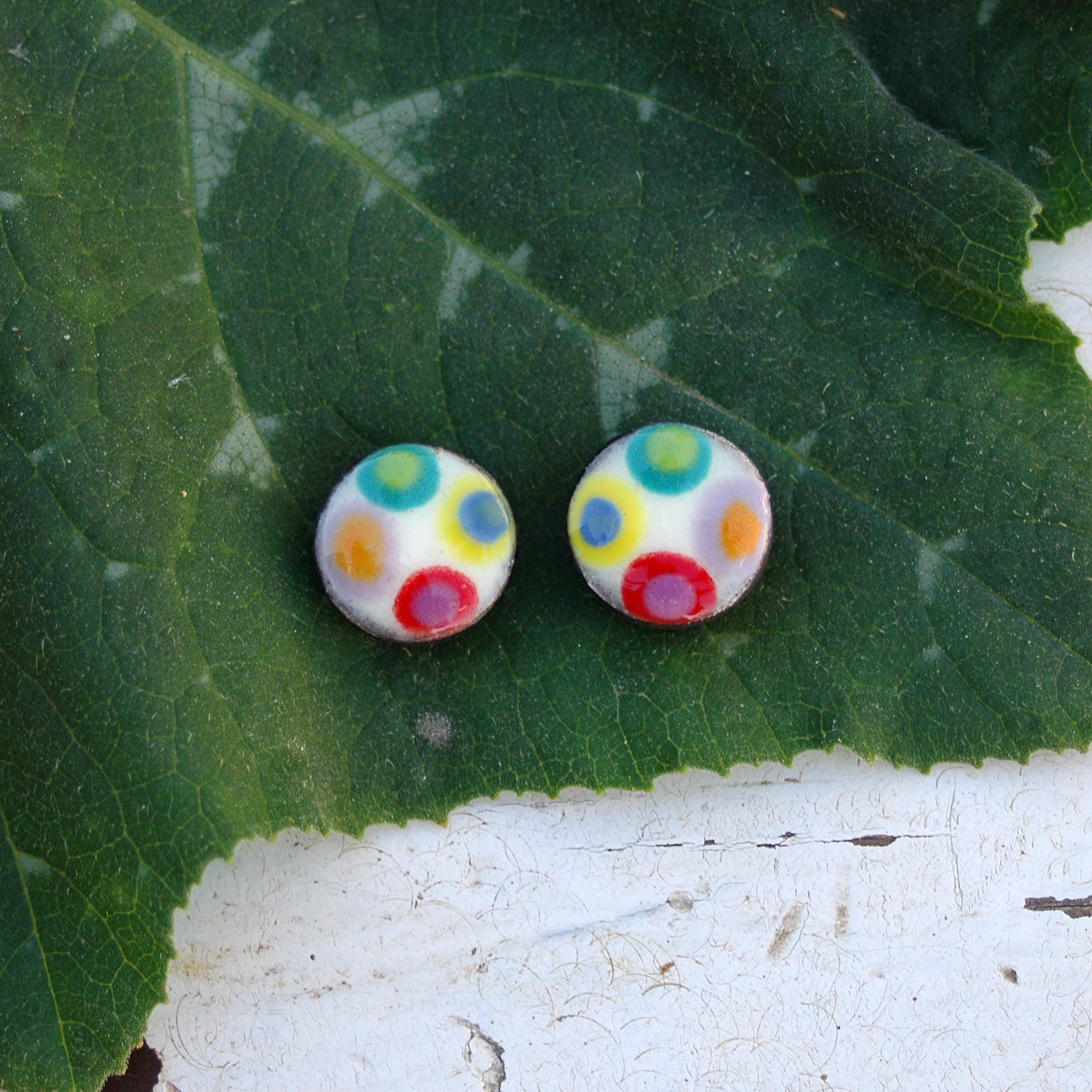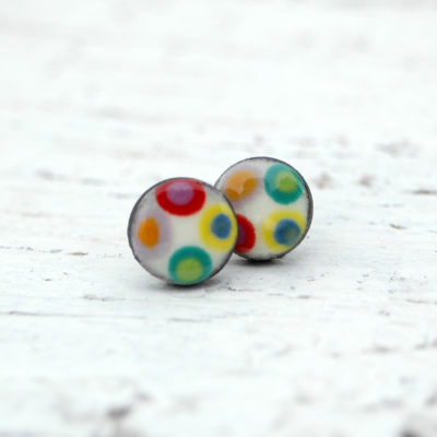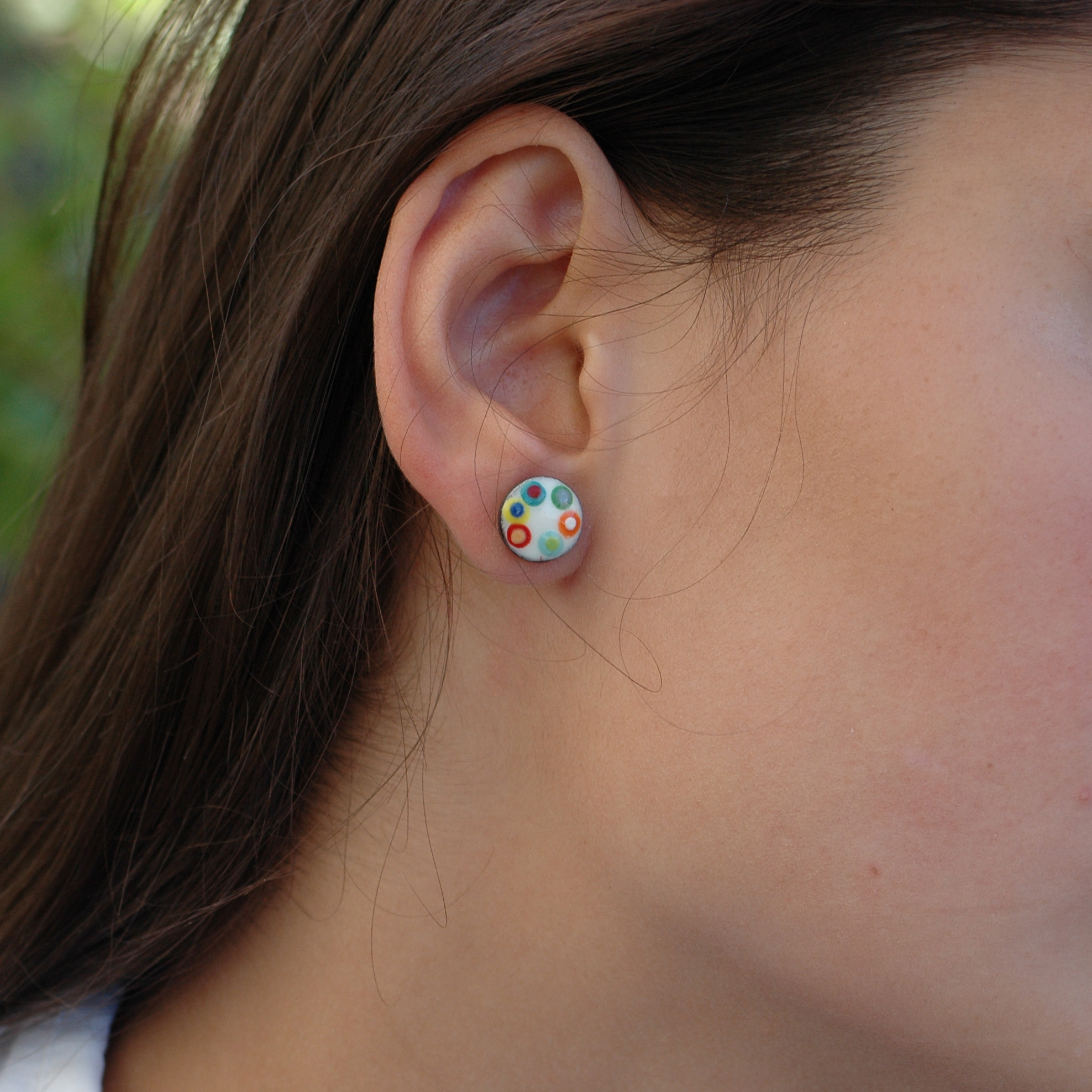 Estos pendientes redondos multicolor son una elección ideal para uso diario. El fondo blanco da luz a tu rostro y contrasta muy bien con los divertidos colores. Es una pieza Juvenil, alegre y muy luminosa. Un toque de color y fantasía en tu estilo. Ideal para ella, una mujer desenfadada que disfruta los momentos bonitos de la vida. El cierre es de perno en plata de 1ª Ley así como la tuerca, antialérgicos y ligeros.